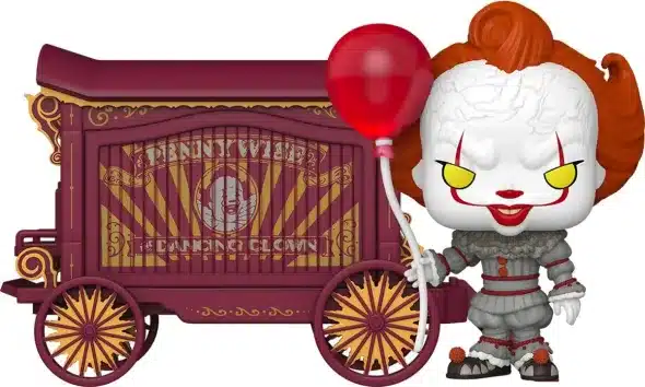 Tenemos el Funko Pop Television #1746 (disponible en 2 versiones: Pennywise y Bob Gray), el #1747 (que representa a un hombre esquelético) y el #1748 (Pennywise comiéndose una calavera). También el Funko Pop! Town #49, que muestra a Pennywise con su globo delante de un vagón.