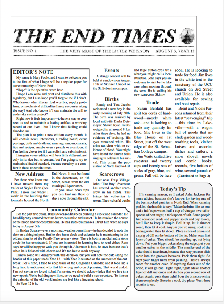 Publicada por la editorial independiente de terror Bad Hand Books, se trata de una historia postapocalíptica narrada a lo largo de doce números de un periódico local en el pueblo ficticio de North End. La serie se inspira, en parte, en las novelas serializadas del propio Stephen King, como The Green Miile y The Plant.
